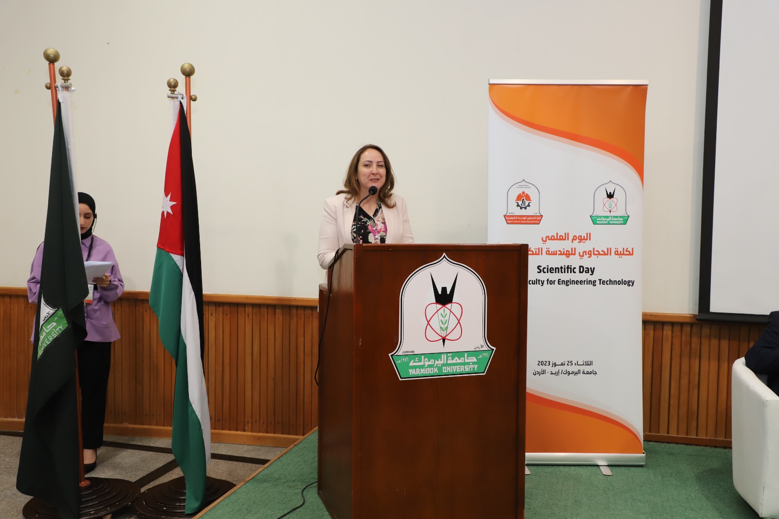 رعت الأمينة العامة للجنة الوطنية الأردنية لشؤون المرأة المهندسة مها علي افتتاح فعاليات اليوم العلمي لكلية الحجاوي للهندسة التكنولوجية في جامعة اليرموك، بحضور رئيس الجامعة الدكتور إسلام مسّاد.